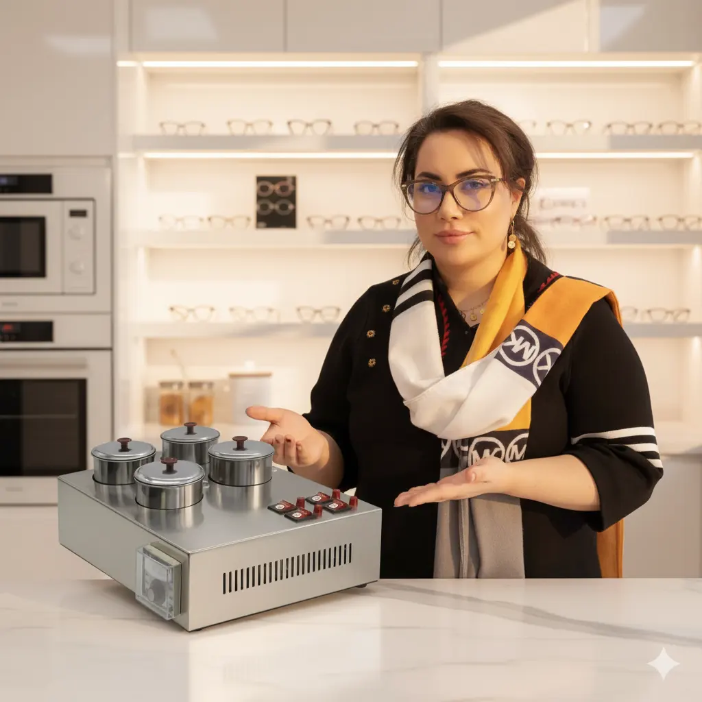 دستگاه رنگ‌آمیزی لنز (عدسی) عینک استیل ضدزنگ با ۴ محفظه: یک انتخاب حرفه‌ای برای کارگاه‌های کوچک و فروشگاه‌های عینک