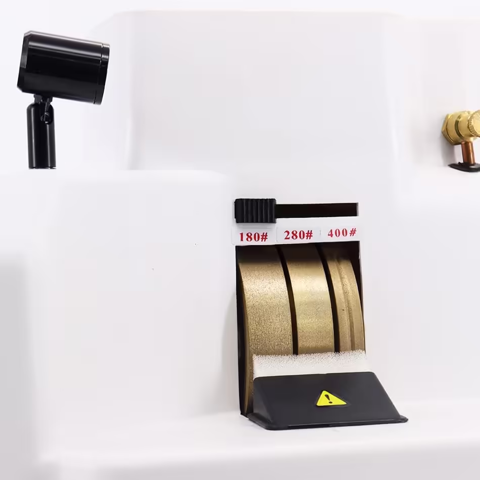 این ویژگی به شما این امکان را می‌دهد که بدون نیاز به تعویض مداوم سنگ‌ها، به سرعت و با دقت بالا از هر سنگ برای نیاز خاص خود استفاده کنید. سنگ 180# برای برش‌های اولیه و قوی‌تر، سنگ 280# برای تنظیم دقیق‌تر و سنگ 400# برای پرداخت نهایی و صیقلی کردن سطوح به کار می‌رود. این قابلیت باعث می‌شود کار شما سریع‌تر و با کیفیت‌تر انجام شود.
